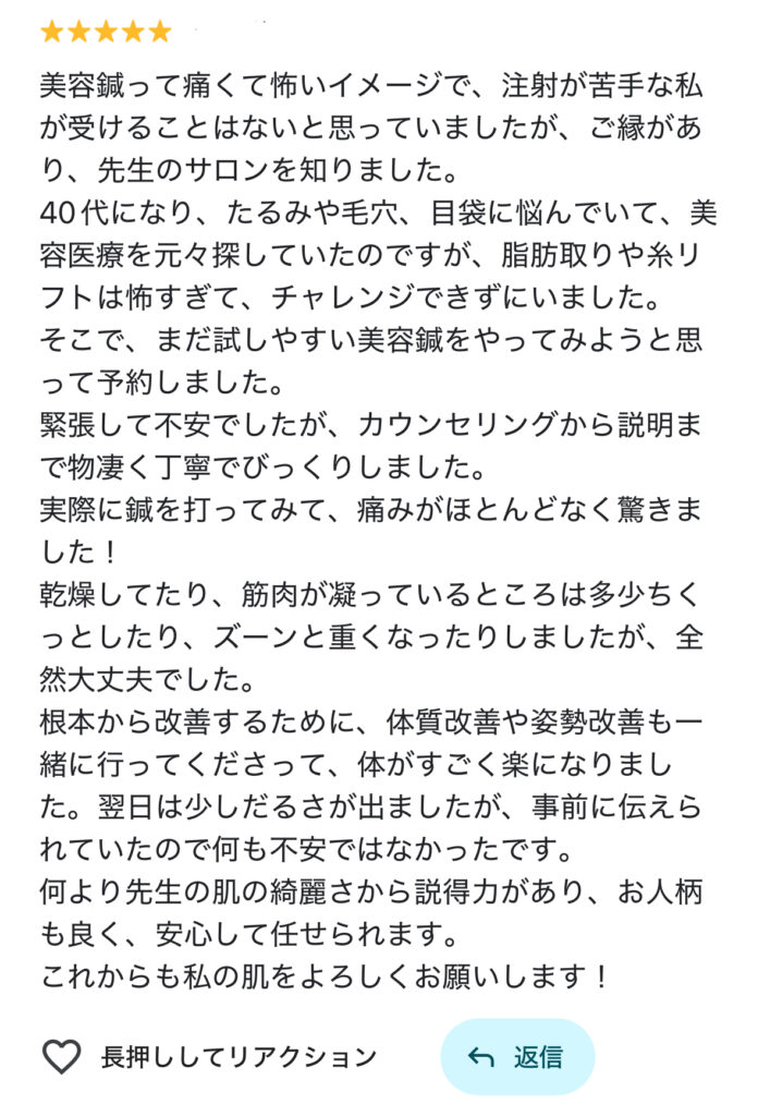 痛みを最小限に抑えるために、最高級の細い鍼を使用し、高い技術力で痛みの出ずらい施術を行います。